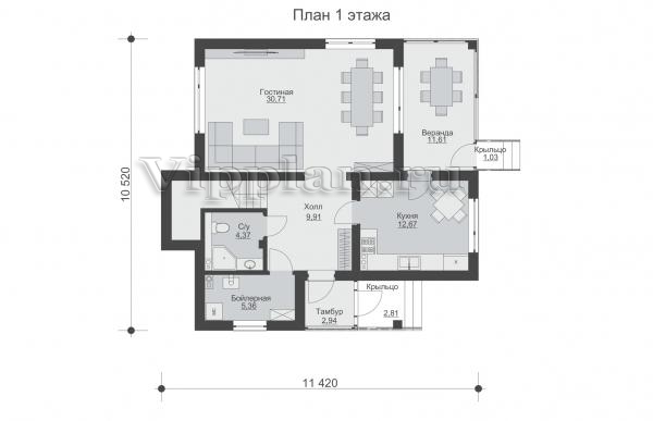 | Размеры дома: | 10.52м×11.42м |